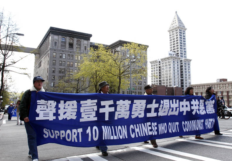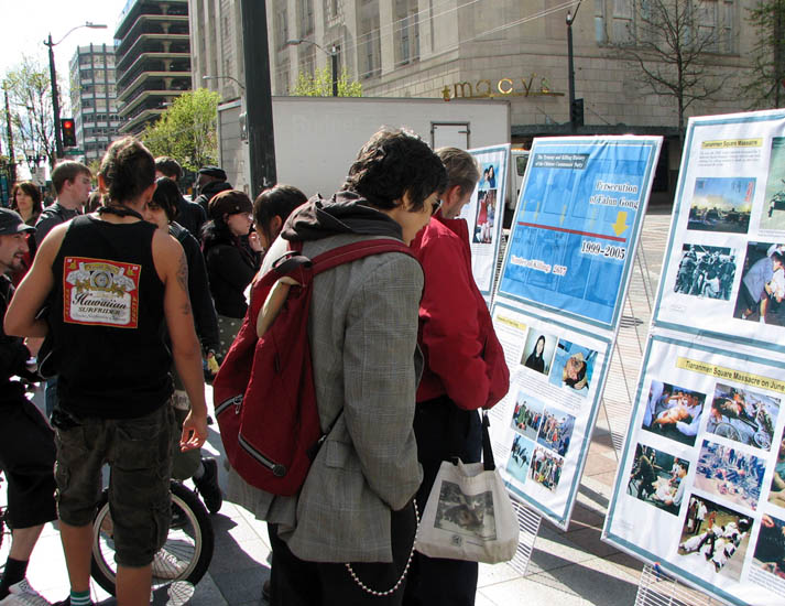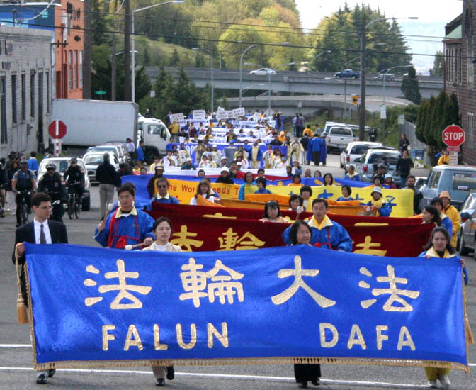 来自北美各地的法轮功学员,退!党!服务中心和大.纪.元;时报等正义团体的义工们,汇集在西雅图,向善良的西雅图人民,向美国人民表达我们的心声。
