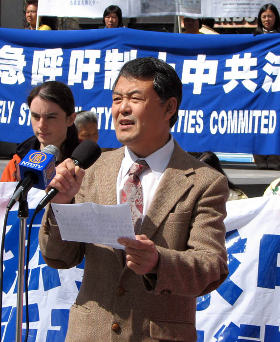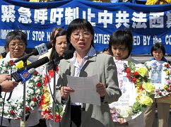 “赴中国大陆全面调查法轮功受迫害真相委员会”的代表李婴博士在集会上发言,指出中共在集中营和劳教所等设施内活体摘取法轮功学员器官的暴行受到多位证人指正,而且得到初步调查核实,这种法西斯行径曝光三个星期后,中共才打破沉默出面否认,实际是中共需要时间去安排、使用惯用伎俩,销毁转移证据,而后贼喊捉贼般的邀请国际机构参观,企图逃避国际社会的谴责和压力。