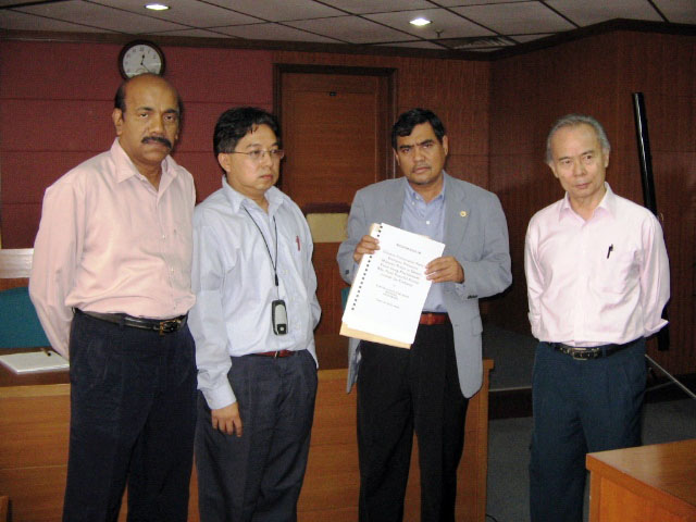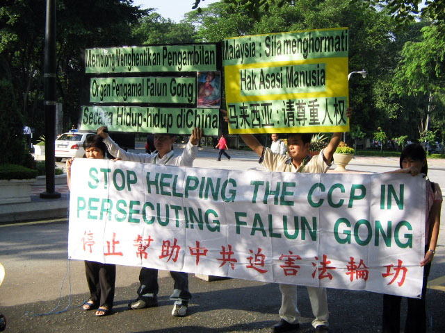 马来西亚法轮功学员早上先前往马国警察总部的警察纪律部门投诉,同时举起横幅向马来西亚政府传达信息,希望马国尊重人权,勿受中共胁迫。学员也抗议中共把迫害延伸至马来西亚。随后,学员赶往马来西亚人权委员会递交备忘录。