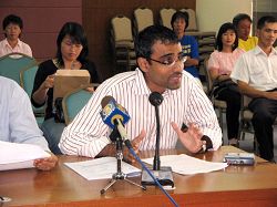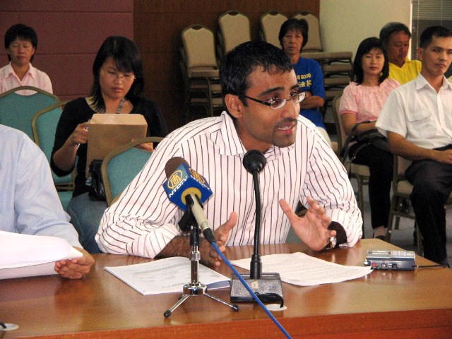 苏仁出席了法轮功学员在人权委员会召开的记者会,同时在记者会上发言。他说: “马国警方竟协同中共使馆干扰这里的(法轮功)学员,这种做法让我们感到惊讶和失望。而中共使馆的态度非常专横,甚至威胁在使馆外抗议的学员。我们有个报案纪录说,中使馆工作人员向学员威胁说‘我拉你進去你就没命!’”