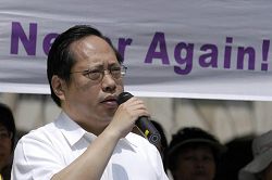 ![]() 香港立法会议员何俊仁在集会上发言,呼吁国际社会进行独立调查。 |