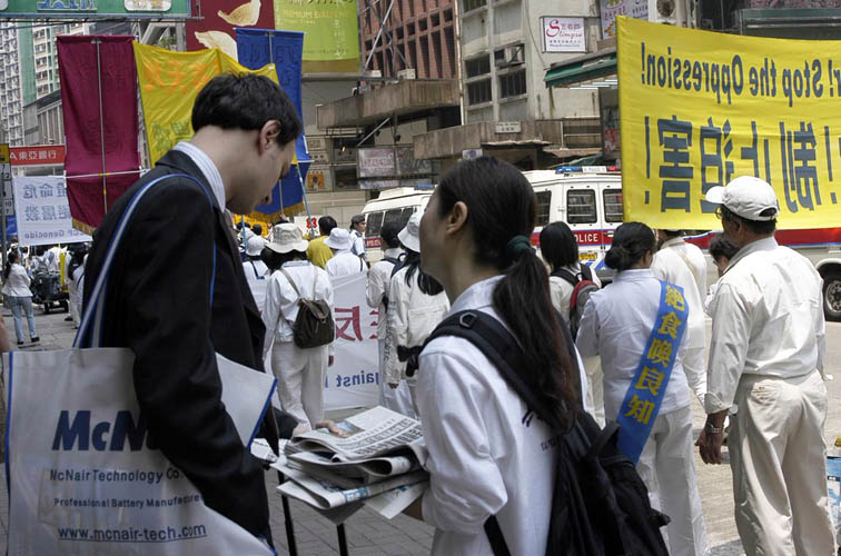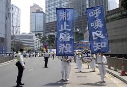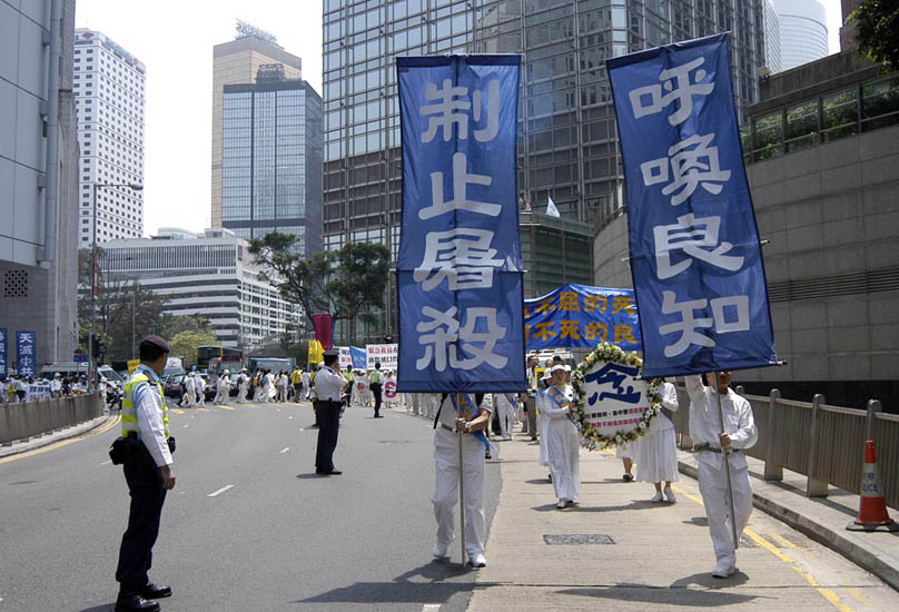 在游行前的集会上,香港法轮佛学会发言人简鸿章指出,近期揭露的中共集中营摘卖活体器官惨案,说明6年多来法轮功学员汇集的大量第一手迫害案情,只是中共迫害法轮功学员真相的冰山一角,更多的黑幕一直隐藏在中国劳教所等关押场地,还未揭发出来。法轮功学员呼吁国际社会谴责中共的暴行,并支持派出调查团进入中国大陆进行全面独立的调查。他们还要求中共当局无条件的配合调查。