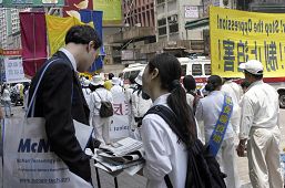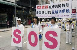 ![]() 游行队伍呼吁紧急营救在中共劳教所面临灭口的法轮功学员 | ![]() 法轮功学员向过路人讲真相 |