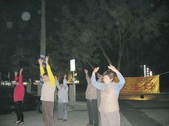 ![]() 晚上在文化路炼功让逛街的大陆游客能看到 |