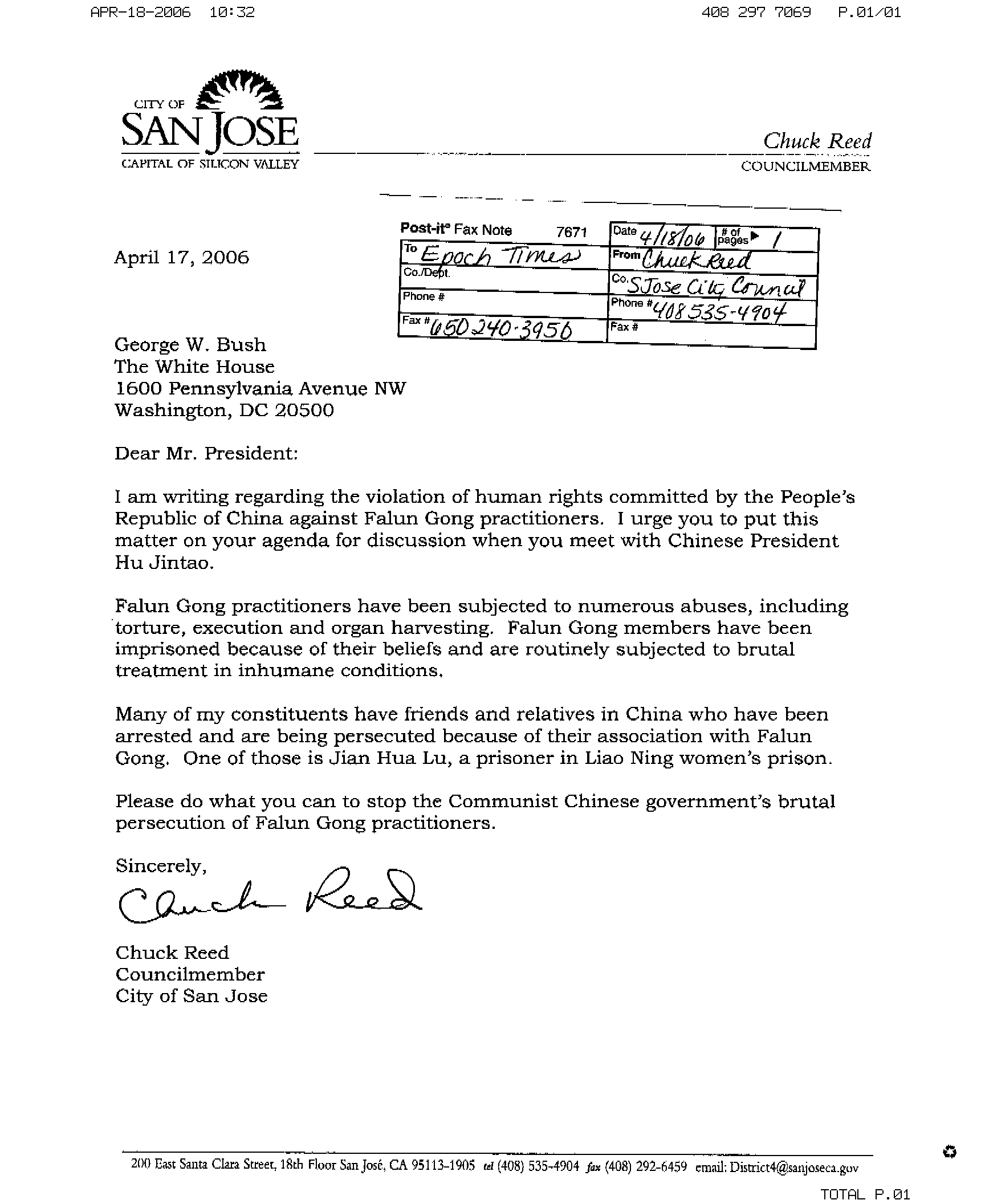 我就中共侵害法轮功学员的人权一事给您写这封信。我敦促您将此事列入您和胡锦涛会面时的议题当中。