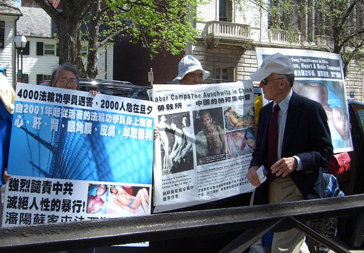 康州大报 The Hartford Courant 的记者大卫(David Funkhouser)采访了戴志珍女士。大卫还在报导中写道:“一位从德国来的女士对记者说,‘你是美国人,我需要你的支持。我从德国来,我需要你的支持。’这位女士举着一个展板,而展板上是一个憔悴的人正在被折磨,并写着‘中共集中营贩卖人体器官谋取暴利’。这位女士说话的时候,泪水从她脸上滑落。”