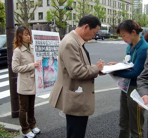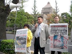 日本法轮大法学会代表鹤园雅章先生在接受记者采访时说,今天大家到这里来请愿,主要是希望国会议员都能够了解这样重大的事件,由苏家屯事件曝光引发出来的中共活体摘取并贩卖法轮功学员器官的罪行,我们希望日本政府、议员了解中共的暴行,并且加以制止。
