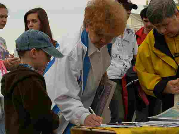 【明慧网2006年4月25日】2006年4月22日,乌克兰法轮功学员在克拉玛托尔斯克举行活动,抗议中共