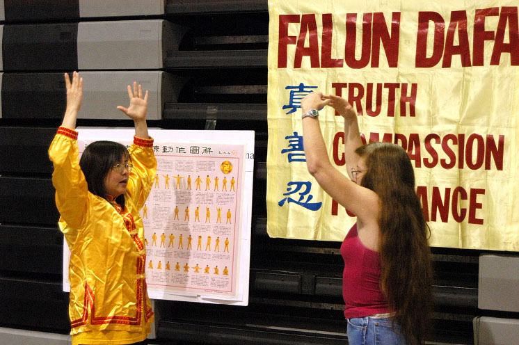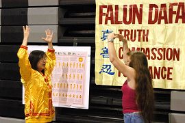 【明慧网2006年4月26日】2006年4月22日,美国堪萨斯州法轮功学员应邀参加了第三届北城(Northland)文化节。一天的活动中,学员们在指定的摊位上派发了介绍法轮功洪传世界的材料,并为参加活动的人们义务教授了功法。在活动即将结束时,学员们还上台演示了法轮功五套功法。