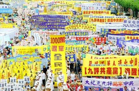 台湾营救被迫害法轮功协会理事长、台大政治系教授明居正指出,前年11月,大.纪.元;报在全球各地发表《·九·评*共产党》系列社论,引爆退!党!潮。不到一年半,退出中国共产党、共青团与少先队的“三:退.”人数已接近一千万人次。