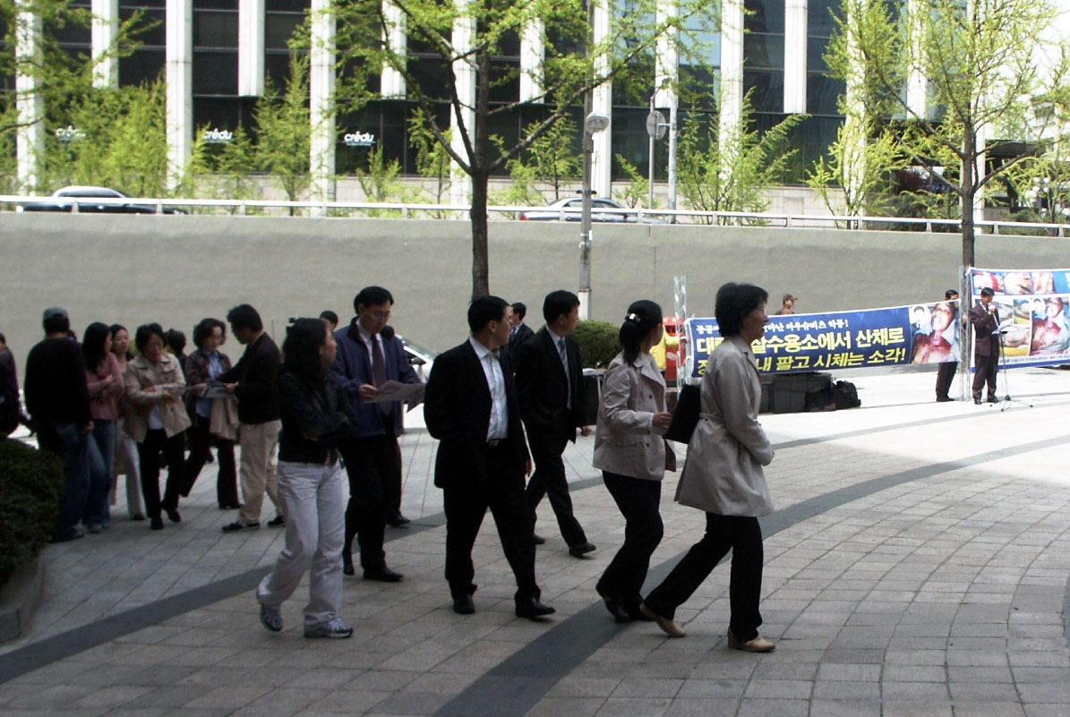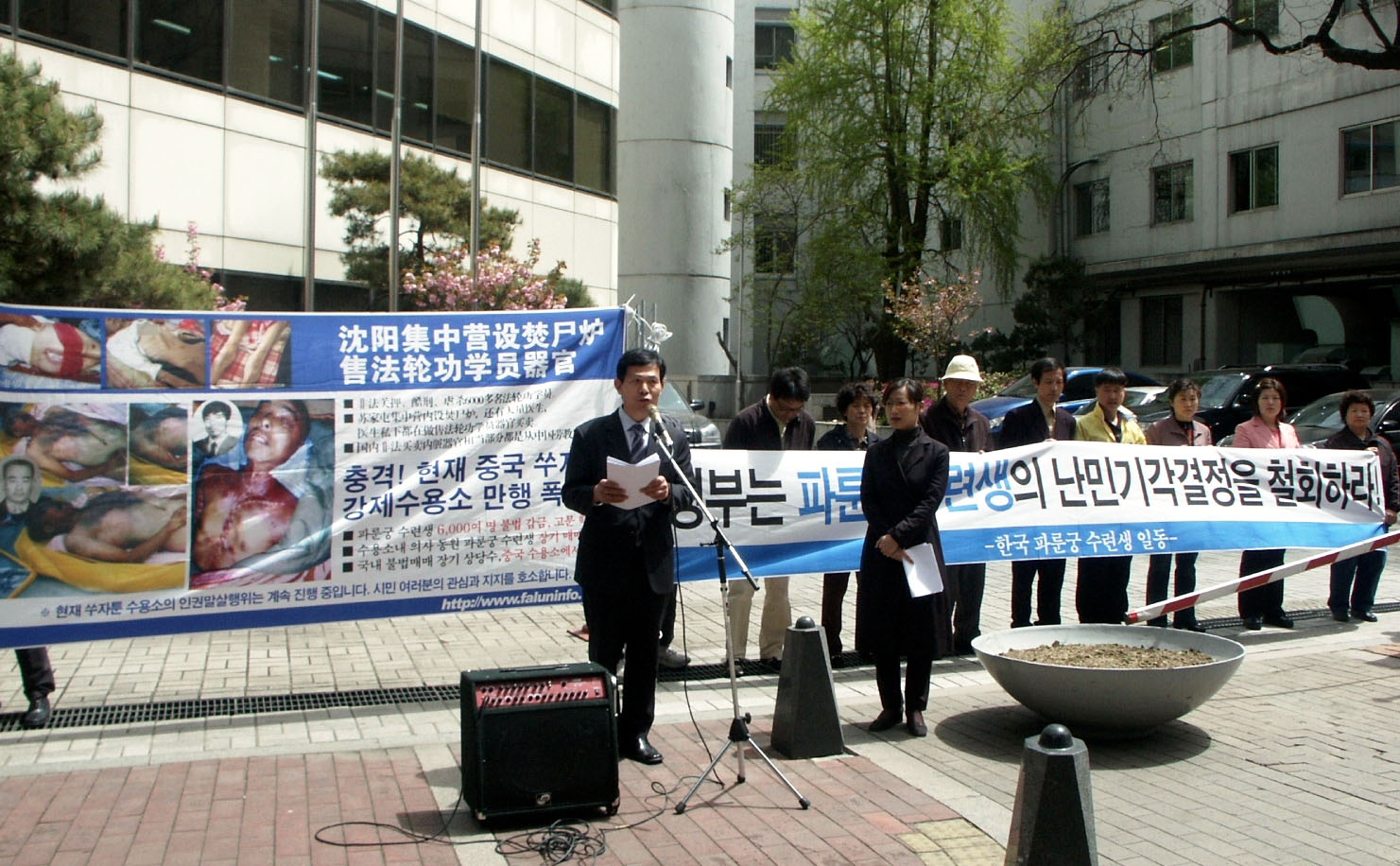 2006年4月24日,韩国法轮功学员在朝鲜日报和中央日报--韩国最大的两家报社前分别召开新闻发布会,谴责中共活体摘取法轮功学员器官的罪行,呼吁韩国媒体广泛关注。