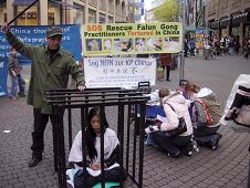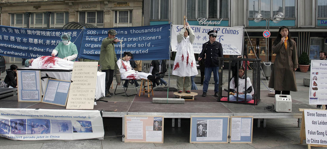 2006年4月19日,法轮功学员于科隆市(Cologne)商业中心以真人模拟的方式揭露中共活摘人体器官的兽行,以紧急呼吁德国民众的关注。德国RTL电视台的记者到场采访,并于当晚18点的新闻节目中播出。据估计50万电视观众收看了当晚的节目。德国《图片》报社(Bild Zeitung)的记者也到场進行了将近1小时的采访。学员们向记者介绍了法轮功自1999年以来受到的来自中共的迫害,尤其是令人发指的中共长期有组织的活摘法轮功学员器官牟利并焚尸灭迹的罪行。一学员讲述了她因分发法轮功真相传单在北京劳教所里被非法关押16个月的亲身经历。
