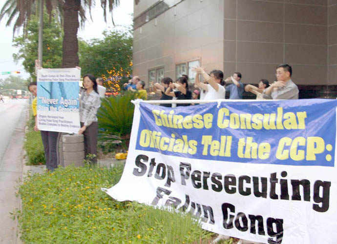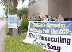![]() 中领馆前抗议迫害 | ![]() 中领馆前抗议迫害 |