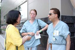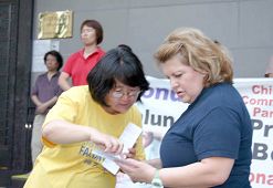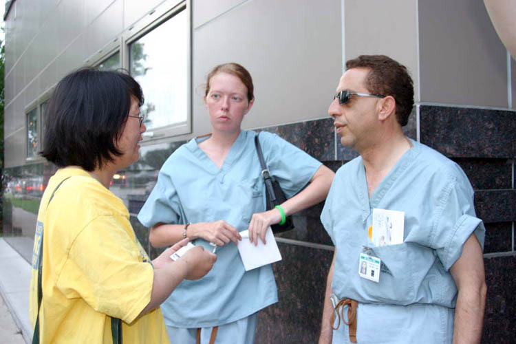 ![]() 法轮功学员向医生讲真相 | ![]() 法轮功学员向行人讲真相 |