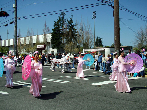 此时的华州,春暖花开,处处可见金灿灿的水仙花和淡粉色的樱花,且当日阳光格外明媚,因此观众也比往年多很多。游行从早上10点开始,在华州南部的Tacoma,Puyallup,Orting,和Sumner 4个城市相继举行,直至傍晚7点结束。