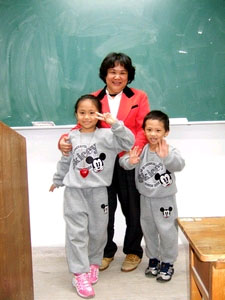 ![]() 在明慧学校与孙子孙女欢乐合影 |