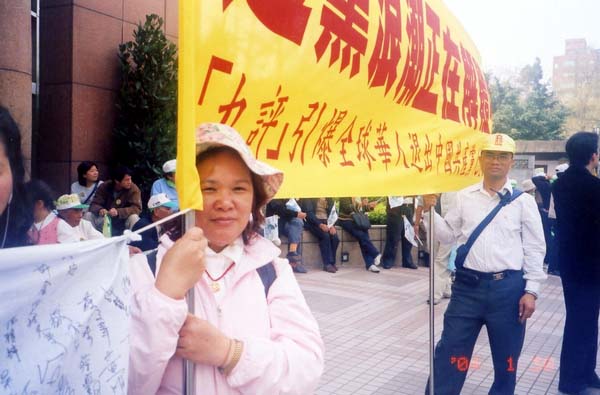 2002年我儿子娶媳妇,喜宴的时候这朋友也来了,她发觉我当天气色不好,后来隔了一阵子就打电话给我,很认真的跟我说希望我去看《转法轮》这本书试试,我这才知道原来炼法轮功首要先看《转法轮》,我知道后就马上打电话给儿子,请他回家时一定要去书局带一本《转法轮》回来。那时我儿子刚好在席间吃宵夜,同桌的佛教“居士”朋友们听到电话后都跟他说,你妈妈说要买法轮功的书呀?这样不太好吧!但是深知妈妈病苦一生的我儿子却正色的跟他们说,这是我妈妈指名要买的书,我一定要买!