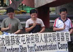![]() 法轮功学员抗议中共虐杀暴行 |