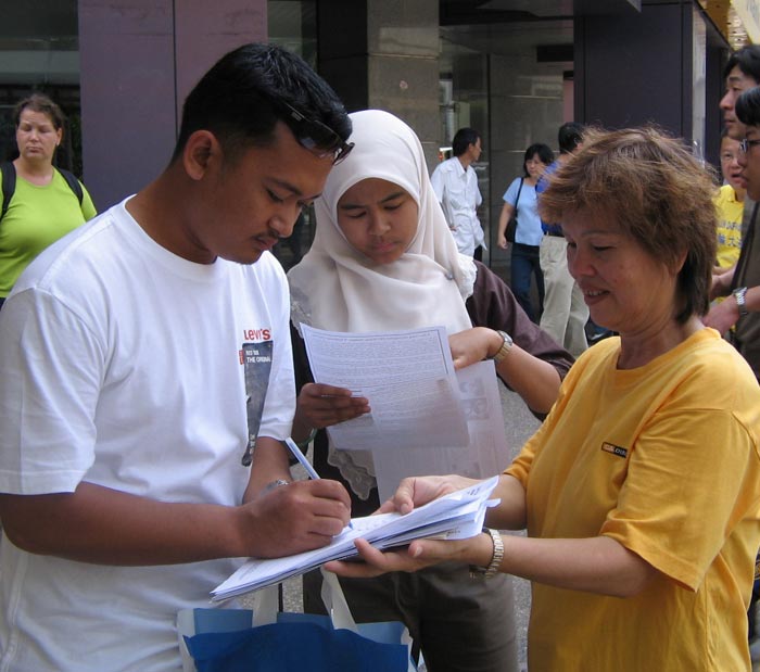 参与征签活动的法轮功学员表示,自从中共苏家屯秘密集中营被披露以来,他们就开始将这件灭绝人性的暴行大量曝光,包括向马国司法界、医院和各政府部门等。这次,他们進行街头征签,希望让广大民众知道这件事情。