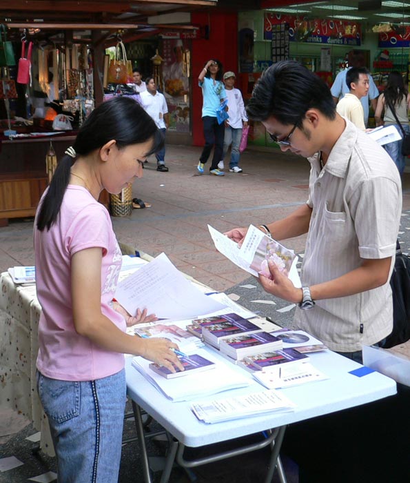 法轮功学员表示,武吉免登区位于吉隆坡最热闹繁华的地段,马国各族人士都爱来这里逛街,这里也同时是西方游客最爱的旅游地点。在这里征签会遇到社会不同阶层的人士,让他们来共同呼吁、制止中共暴行。