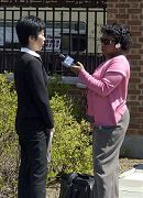 ![]() 杰夫逊医院医生杨景端主持集会 | ![]() 曾在报社工作过的记者费尔-任德尔发言 |
