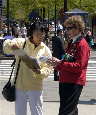 罗娜-米勒女士在谴责中共迫害法轮功的签名本上签完名后说:“我觉得这种事太残忍了!一年前我参观了费城戴氏家族举办的真迹画展,当我进到有关法轮功被迫害的画展室时,我被(中共)迫害法轮功的暴行惊呆了!从此我对法轮功很熟悉。以后再什么活动请告诉我,我愿意义务帮忙。”
