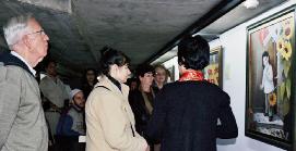 ![]() 民众观赏画作并听法轮功学员讲解 |