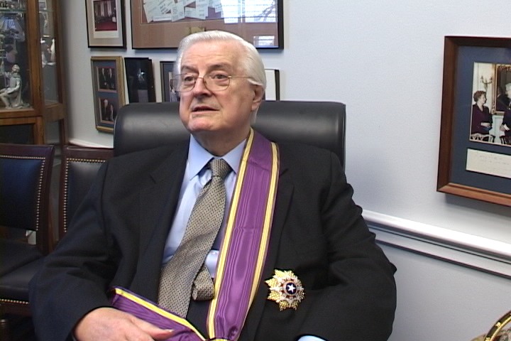 国际关系委员会主席亨利•海德在接受台湾驻美国代表处李大维代表颁发给他的大绶景星勋章后接受了媒体采访。