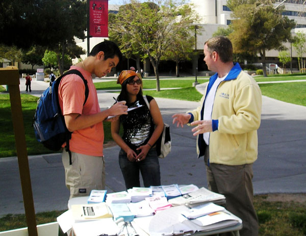 自1999年法轮功被中共迫害以来,拉斯维加斯法轮功学员多次来到内华达大学拉斯维加斯分校讲真相、征集签名、教功,哲学教授多次邀请学员们到课堂上讲法轮功真相,因此,这里很多学生都对法轮功有正面认识,对中共的邪恶本质有相当的了解。