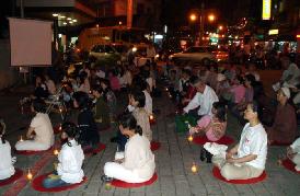 活动的尾声,在场的每个人将烛光举在胸前,在“请与我比邻而坐”与“请坐在我身边”两首深沉的歌曲中,划下了句点。主持人表示,虽然我们手上的小烛光非常弱小,但是经过了解真相的人们口耳相传,一传十、十传百,最后这些微小的烛光们将汇聚成大火把。就如同“请与我比邻而坐”的歌词一样,历史将因为这些正义的声音而改变。