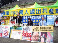 记者会尾声,天音合唱团引领现场民众合唱“滚滚退!党!潮”等歌曲,用歌声共同哀悼被迫害的善良人民,会后由云林县腰鼓队带头游行,共同声援反中共迫害,支持九百万中国民众退!党!,早日和平解体中共。