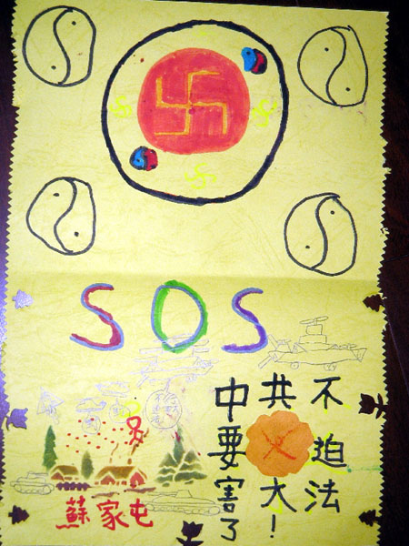 还有其他小弟子的一句句“SOS”、“我要活”、“天灭中共”、“救好人”等,这一句句来自纯真孩童的呼唤深深刻划在卡片上,代表着他们最真挚的心声,明慧教室的师生并将制作完成的卡片成品张贴于展板上。