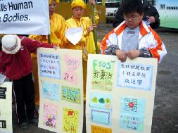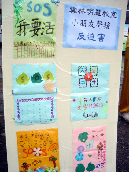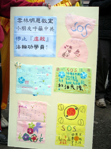 2006年3月26日明慧小弟子们带着自己的卡片展板,参与了“全球告别中共大联盟”在云林县虎尾镇发起的一场“声援九百万退!党!暨反中共迫害”大游行。