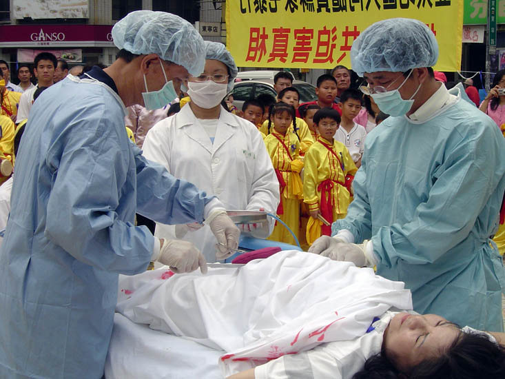 记者会中也安排了揭露活体摘取器官、盗卖器官的行动剧,目睹惨剧的观众无不动容,深感中共的邪恶已经到了魔鬼程度。会后,法轮功学员在现场表演功法,各界的声援展板、横幅沿着东宁公园周围在路边绵延展开,形成一道惊心动魄的真相长城。