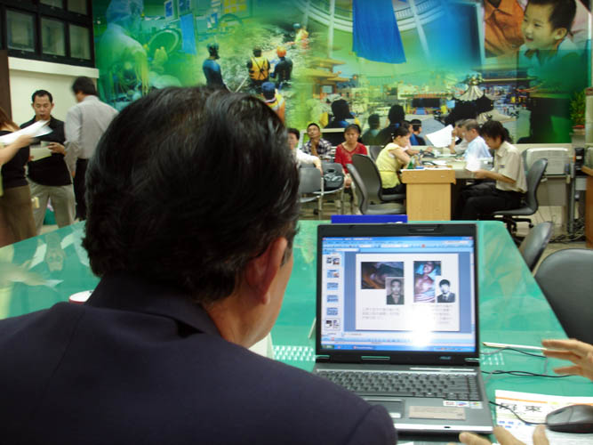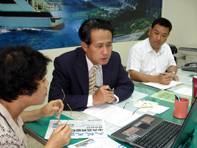 简报中,展示被劳教所迫害的伤痕累累的法轮功学员遗体及关押六千法轮功学员活体摘除器官牟利并私设焚尸炉的苏家屯集中营,曹县长与身旁的秘书都非常专注、表情严肃的观看。曹县长表示,他曾参与声援法轮功学员的绝食抗暴活动,现在法轮功学员为了营救受中共迫害的大陆功友,他乐意再次声援紧急营救。