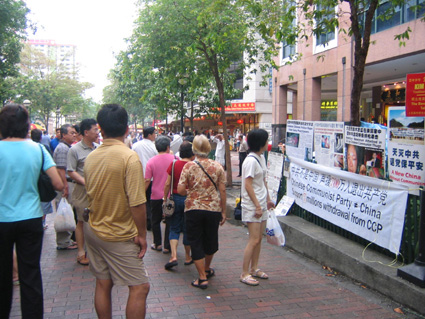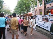 ![]() 4月9日闹市区四马路,学员继续向民众揭露中共的罪恶 |