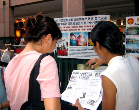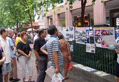 【明慧网2006年5月1日】2006年4月28、29日两天,法轮功学员连续在新加坡闹市区四马路观音庙,展示真相图片,揭露中共持续7年对法轮功学员的残酷,并声援一千万中国人退出中共及其相关组织。