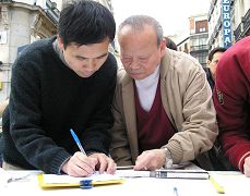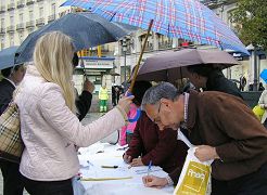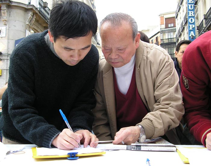 当他们得知到中国的警察是受到中共独裁政府的控制时,一个年轻女孩说:“真希望我们的签名能够帮助制止这场迫害,希望你们能坚持反抗到底,西班牙的佛朗哥独裁政权也是在西班牙人的共同努力下倒台的,中国人民也一定会获得自由的!”