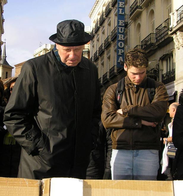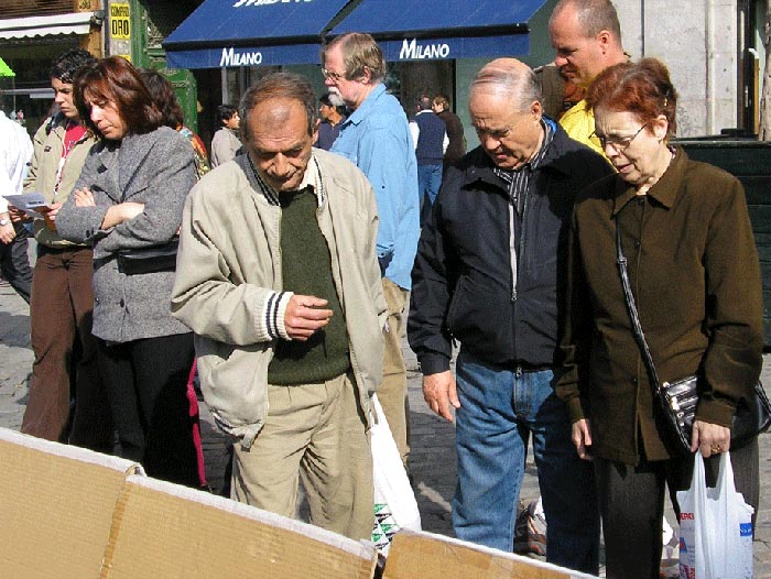 两名负责集会安全的西班牙警察一直默默的站在集会旁边,当听了大.纪.元;的义工第一次用扩音器向过往的人们讲述中共恶党犯下的种种残害中国人民的罪行后,他们即走上前来,破例在签字板上留下了自己的签名(在西班牙,警察值勤时是不能参与值勤工作以外的活动的),他们对一名大.纪.元;义工说:“我们十分了解在中国共产党的专制下没有人权、没有自由的情况,我们有责任表达自己的意愿:那就是必须制止这种情况。”