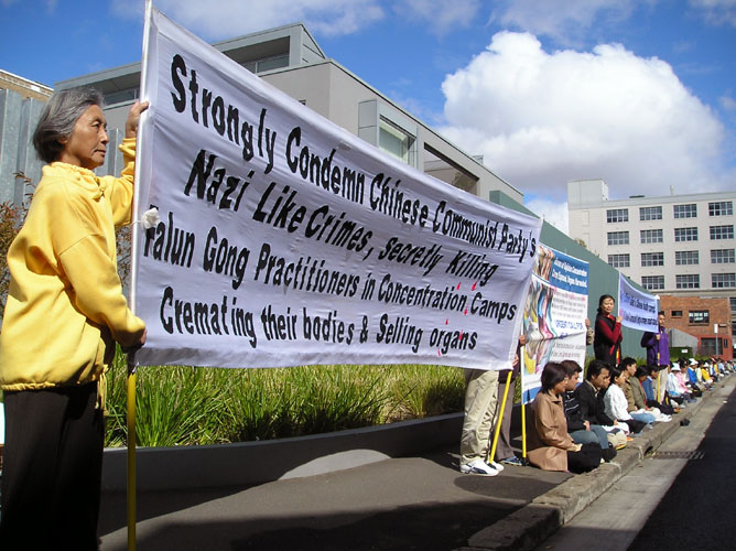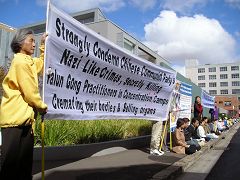 【明慧网2006年5月1日】澳大利亚悉尼法轮功学员2006年4月25日在中领馆前抗议中共暴行,要求开放所有关押法轮功学员的场所,允许调查真相委员会的成员進入中国调查。