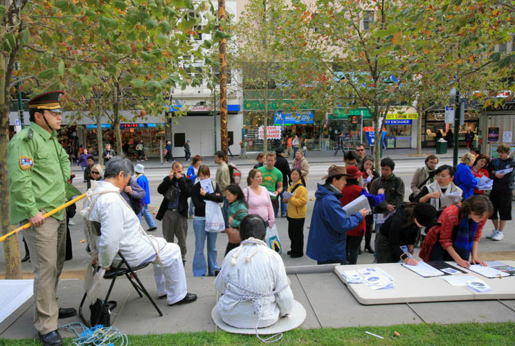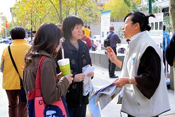 ![]() 反迫害酷刑展现场 | ![]() 过往行人认真倾听学员讲真相 |