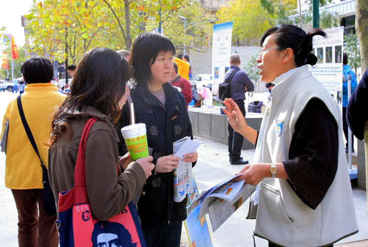 一位中国留学生听完真相后,真诚的问法轮功学员,“我们该如何做来帮助你们呢?我们不能袖手旁观啊。”
