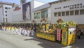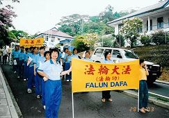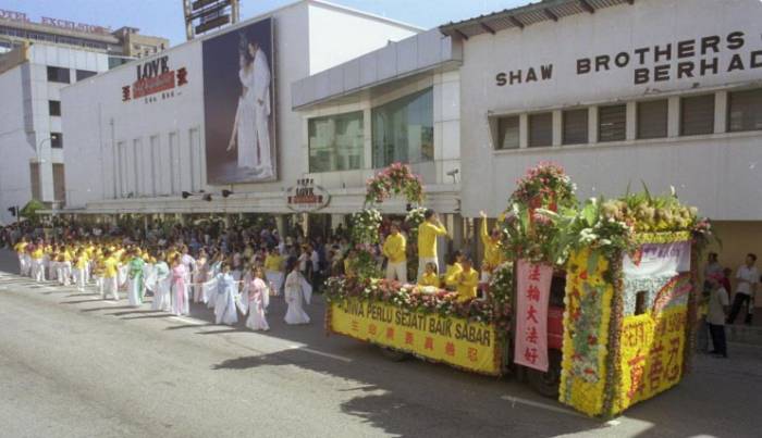 2004年1月4日,马来西亚霹雳州(Perak State)怡保(Ipoh)市政府举办以代表怡保市的九重葛为主题的花车游行活动。主办单位听了学员讲真相,还派人到炼功点做进一步了解,最后决定接受法轮大法团体参加花车游行,法轮功也是游行中唯一有华人传统风格的队伍。怡保的华人市民看到队伍中的花车、仙女和“法轮大法好”时,露出惊喜的表情。