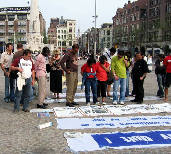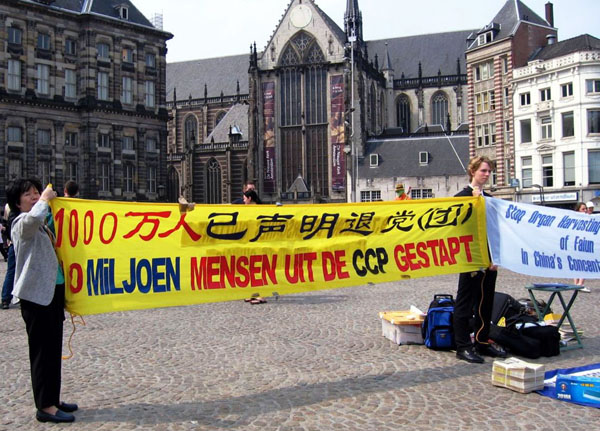 广场上展出了中、英、荷兰文有关声援一千万勇士退!党!以及抗议中共大规模活体摘取法轮功学员器官的横幅,同时,也展出了揭露中共迫害法轮功的真相图片。图片展吸引了很多人驻足观看。义工们和法轮功学员还向人们发放相关的传单。对于中共活摘器官的暴行,很多人表示震惊和谴责。