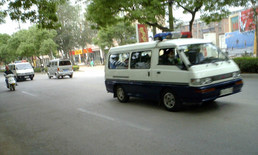 ![]() 不法人员匆匆“宣判”完后,把四名大法弟子带回看守所。这是车队中的两辆车。 |