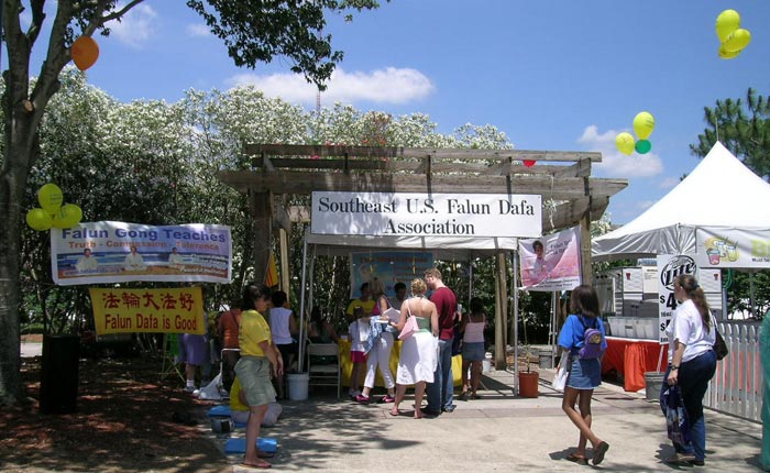 今年是第十四届“世界之邦”(World of Nations)庆祝节,在杰克逊威尔圣约翰河畔的都市公园举办。代表中国传统文化的法轮功应邀再次参加了从五月五日至五月七日的三天庆祝活动。
