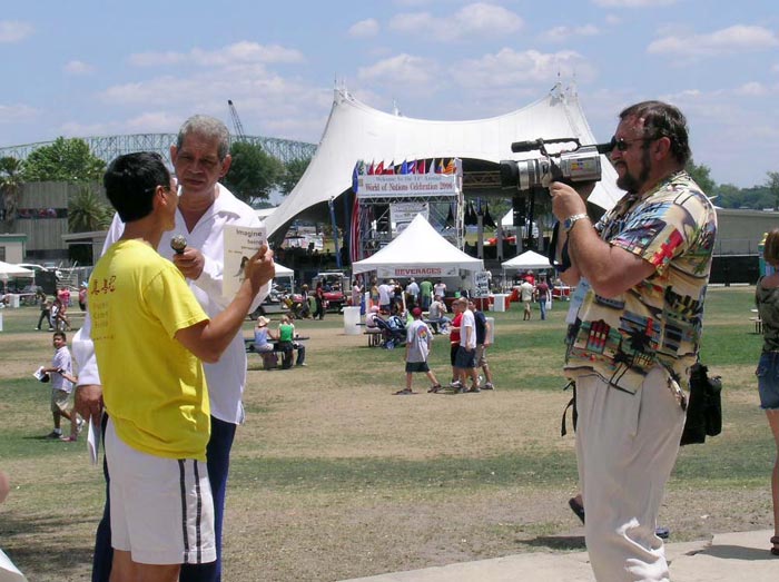 “世界之邦”活动中最重要的一个内容就是游人可以持组织委员会所发的“护照”到代表各国的展位得到“签证”—— 一个印章或粘贴。这样使游人可以走遍所有的展位。法轮功学员为游人精心制作了刻有“法轮大法好,真善忍”的图章。来到法轮大法展位的数千人,都在他们的“护照”上加盖了“法轮大法好,真善忍”的图章.学员告诉每一个人印章的含义。