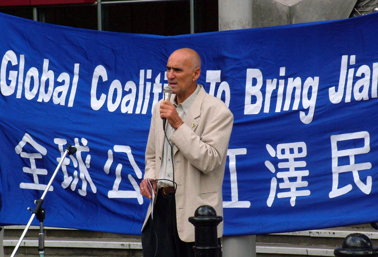![]() 2005年2月28日,纽省参议员科恩在法轮功学员章翠英控告江泽民新闻发布会上讲话 |