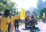 六龟乡举办“隧道怀旧之旅”时,学员在庄严祥和的音乐声中演炼五套功法,把大法的美好传递给每一位市民、乡民,并现场教功。不少政府官员和民众前来看过图片展后,签名支持反迫害并为学员打气加油。
