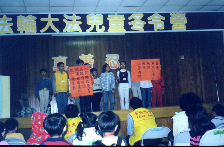 世风日下,社会污浊的洪流侵蚀学生身心至巨,为使下一代能端正身心,以至有缘走上修炼之路,一群法轮功学员风雨无阻的利用周日在高雄文化中心草坪带领小孩子学法炼功。其后明正国小成立周末明慧学校,于2000年8月、2001年1月、2002年6月、2004年8月、2005年2月多次在高雄国军英雄馆、澄清湖传习斋、庄敬国小等地分别举办了“南台湾明慧学校儿童营”,以寓教于乐的方式将法轮大法“真、善、忍”的法理溶入活动中。因课程生动活泼,在欢乐中充满祥和的喜悦,对儿童身心健康起到很好的效果,获得参加的家长和小朋友一致喜爱和好评。(待续)